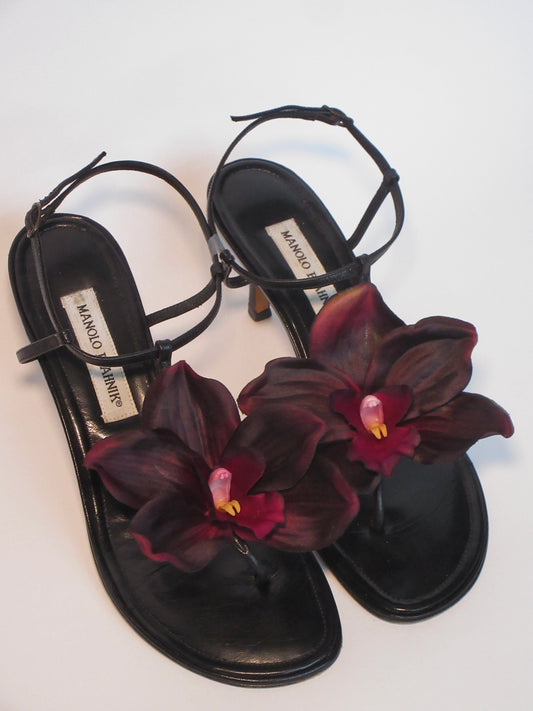 Reworked Upcycled Manolo Blahnik Black Orchid Heels